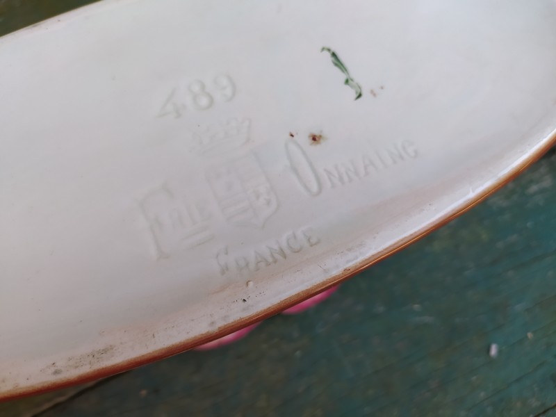 Ancien Vase Jardinière Barbotine Onnaing Décor de Pâquerettes