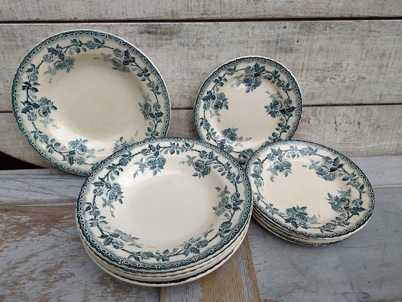Assiettes Faïence Terre de Fer Boulenger Choisy le Roi Décor Frise de Roses