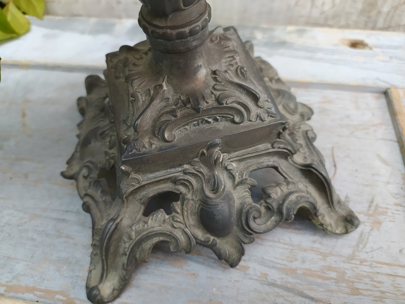 Ancienne Lampe à Pétrole Toupie Verre Émaillé Petites Fleurs